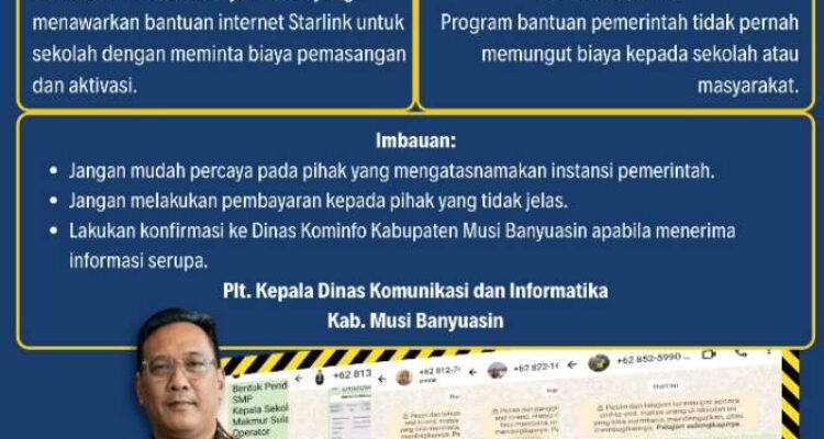 MONPERA.ID, Muba – Pemerintah Kabupaten Musi Banyuasin melalui Dinas Komunikasi dan Informatika (Kominfo) mengimbau masyarakat, khususnya pihak sekolah untuk