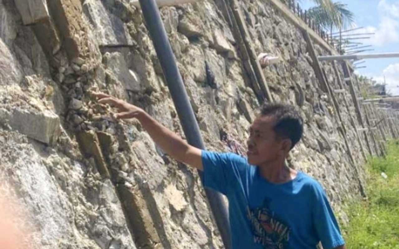 Menurut Oktaria, berdasarkan informasi yang disampaikan masyarakat, pemasangan batu pada talud diduga dilakukan tanpa adukan semen yang memadai. Semen disebut baru diberikan setelah beberapa batu tersusun. Bahkan bagian dalam bangunan diduga hanya diisi batu dan tanah, sementara semen hanya tampak pada bagian luar.