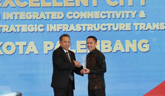 Palembang dinobatkan sebagai Excellent City in Integrated Infrastructure Connectivity & Strategic Infrastructure Transformation, sebuah pengakuan atas keberhasilan kota dalam membangun konektivitas terpadu melalui transportasi sungai, LRT, serta penguatan ekonomi lintas Sumatera.
