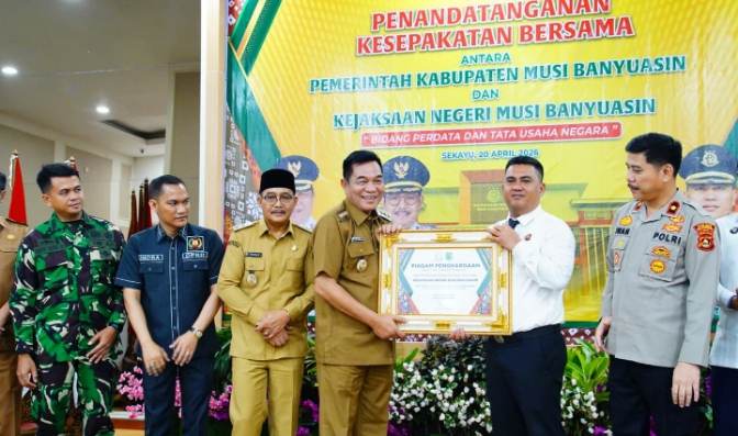 Hal itu dibuktikan setelah ditandatangani Naskah Kesepakatan Bersama Bidang Perdata dan Tata Usaha Negara (TUN), antara Bupati Muba H.M Toha dengan Kepala Kejaksaan Negeri (Kajari) Muba, Aka Kurniawan di Guest House Griya Bumi Serasan Sekate, Senin (20/4/2026).