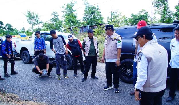 Pada peninjauan proyek perbaikan jalan, Bupati Toha didampingi Asisten 2 Bidang Perekonomian dan Pembangunan, Alva Elan SST MPSDA, Kepala Dinas PUPR Muba, Rudianto ST dan Plt Kadis Kominfo Muba, Daud Amri  SH
