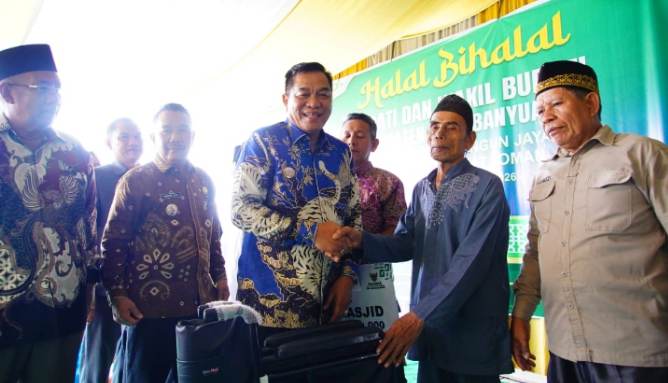 Dalam kesempatan itu, Bupati Muba juga menyalurkan sejumlah bantuan kepada masyarakat. Bantuan tersebut merupakan kolaborasi antara Dinas Sosial Muba, Dinas Ketahanan Pangan Muba, dan Baznas Muba, berupa paket sembako, bantuan pangan, kursi roda, serta dukungan bagi pengurus masjid.