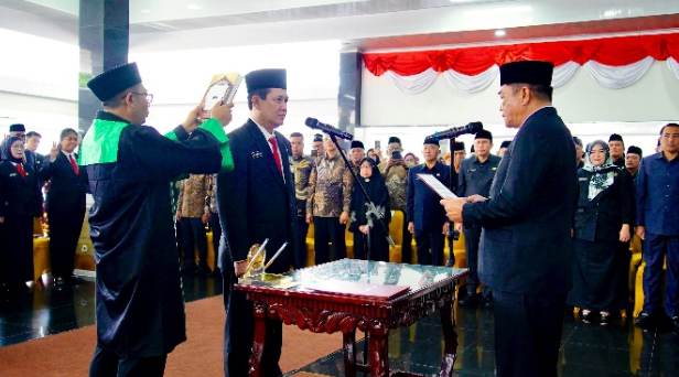 Pelantikan dan pengambilan sumpah Pejabat ini dilakukan di Pendopoan Griya Bumi Serasan Sekate, Kamis (12/3/2026).