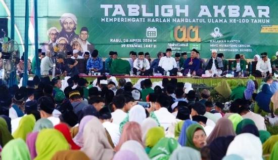 MONPERA.ID, Muba – Memperingati Hari Lahir (Harlah) ke 100 Nahdlatul Ulama (NU), menjadi momentum untuk memperkuat syiar dan juga bersinergi upaya dalam meningkatkan pembangunan. Hal itu dikatakan Bupati Musi Banyuasin H.M Toha, saat menghadiri Tabliqh Akbar dalam rangka memperingati Harlah NU ke 100, yang berlangsung di Halaman Kantor Majelis Wakil Cabang Nahdlatul Ulama (MWC NU) Kecamatan Bayung Lencir, Rabu (8/4/2026).