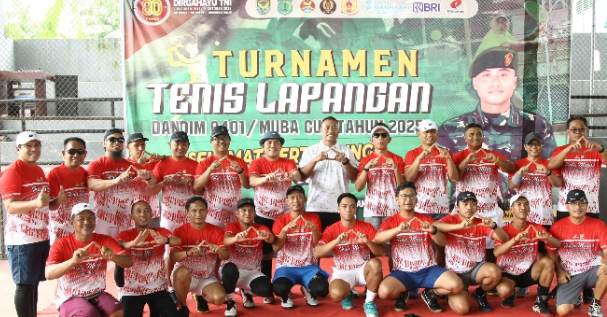 Turnamen Tenis Cup 2025 dibuka langsung oleh Dandim 0401/Muba Letkol Kav Fredy Christoma Pramono P, dan dihadir Bupati Muba HM Toha yang diwakili Kepala Dinas Perpustakaan dan Kearsipan Muba Azmi Darisumansyah.