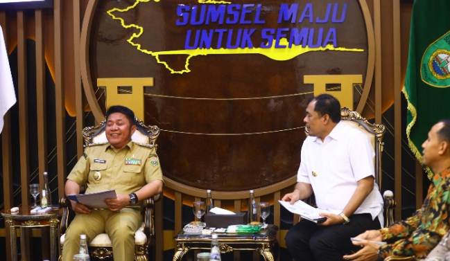 MONPERA.ID, Palembang – Gubernur Sumatera Selatan Herman Deru bersama Bupati Ogan Komering Ulu Selatan (OKUS) Abusamah, melakukan pembahasan berbagai infrastruktur dan pembangunan daerah di Kabupaten Ogan Komering Selatan (OKUS), saat audensi di Ruang Tamu Gubernur Sumatera Selatan, Senin (5/1/2026).