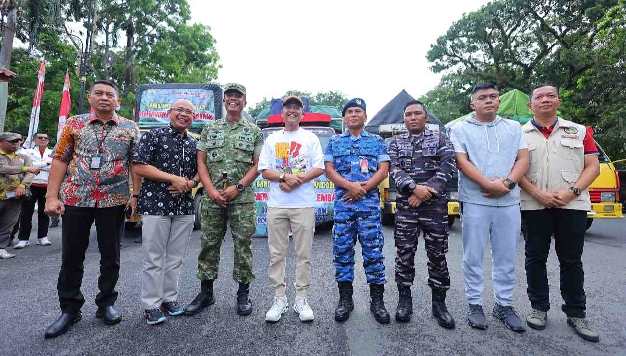 Wali Kota Palembang Ratu Dewa secara simbolis melepas 10 armada bantuan kemanusiaan, di halaman Kambang Iwak, Jumat (5/12/2025).