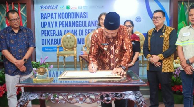 Dalam kesempatan tersebut, dilakukan juga penandatanganan komitmen bersama, untuk memastikan tidak ada pekerja anak di sektor pertanian di Kabupaten Musi Banyuasin. Dimana, penandatangan itu menjadi simbol tekad bersama bahwa perlindungan anak harus menjadi prioritas utama di kabupaten yang dikenal sebagai salah satu sentra perkebunan terbesar di Sumatera Selatan.