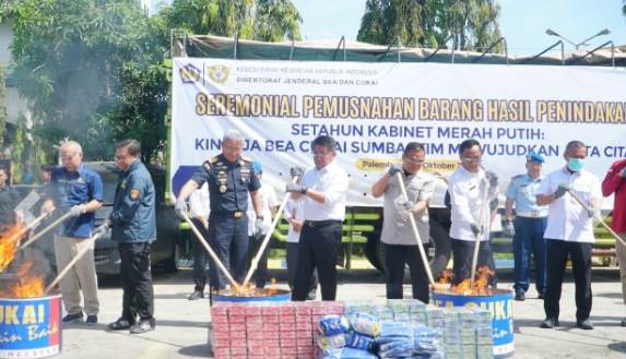“Hari ini kita melihat sebuah prestasi luar biasa dari jajaran Bea Cukai Sumbagtim. Ini adalah bentuk nyata dari kerja keras dan sinergi yang patut diapresiasi oleh Pemerintah Provinsi Sumatera Selatan. Upaya ini bukan hanya menegakkan aturan, tapi juga melindungi masyarakat dari dampak barang-barang terlarang yang tidak sesuai dengan ketentuan cukai,” katanya.