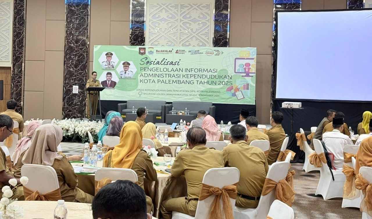 Pemerintah Kota Palembang melalui Dinas Kependudukan dan Pencatatan Sipil (Disdukcapil) menggelar Sosialisasi Pengelolaan Informasi Administrasi Kependudukan (Adminduk), Selasa (18/11/2025).