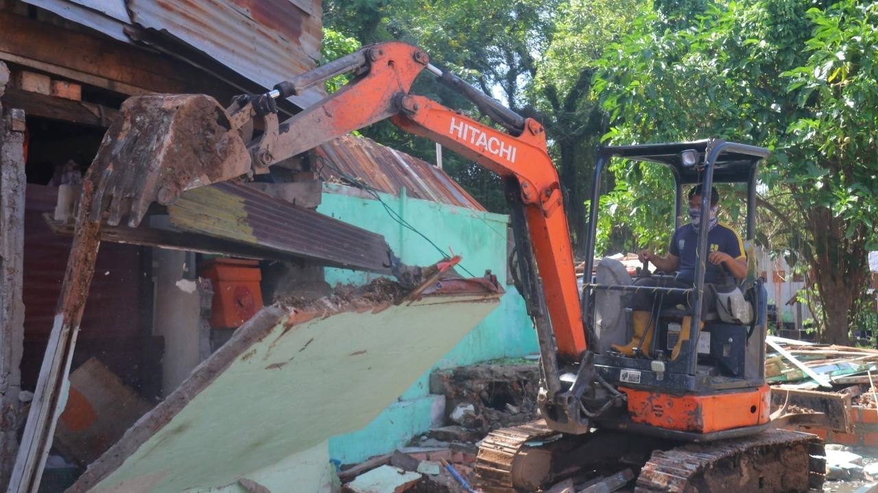 Dari kantor lurah, petugas berjalan kaki ke lokasi penertiban. Setelah pembacaan SK Keputusan terkait penertiban, dan listrik diputus, alat berat berupa excavator mini segera secara bertahap membongkar rumah. Petugas Sat Pol PP, dibantu petugas Damkar dan Perkimtan memindahkan barang-barang dari rumah.