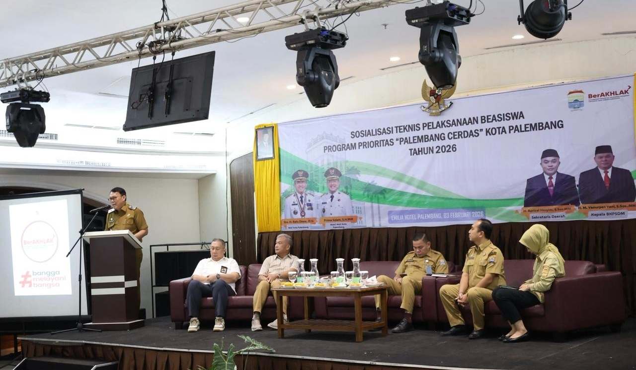 Hal tersebut diwujudkan melalui Sosialisasi Teknis Pelaksanaan Beasiswa Program Prioritas Palembang Cerdas, yang secara resmi dibuka oleh Asisten III Administrasi Umum Setda Kota Palembang, Ir. H. Akhmad Bastari, mewakili Wali Kota Palembang Ratu Dewa, Selasa (3/2/2026), di Ballroom Hotel Emilia Palembang.