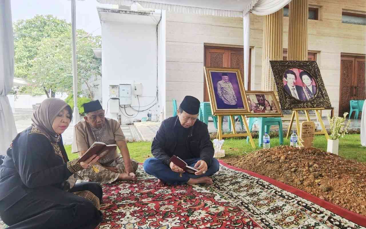 Ketua DPR RI 2009-2014 yang juga Rektor Universitas Indonesia Global Mandiri, H Marzuki Alie, tampak tertunduk khusyuk di depan pusara almarhum, mengirimkan doa terbaik untuk sosok yang selama ini ia kenal sebagai ahli sedekah dan dermawan.