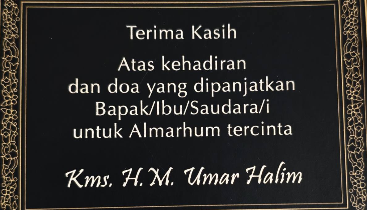 “Kami mengucapkan terima kasih yang sebesar-besarnya atas kehadiran, perhatian, serta doa tulus yang dipanjatkan oleh Bapak, Ibu, dan seluruh saudara sekalian untuk almarhum ayahanda tercinta,” ungkap Kms. H. M. Umar Halim dengan nada haru.