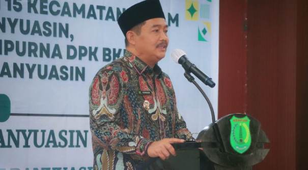 MONPERA.ID, Muba – Wakil Bupati Musi Banyuasin Rohman, menghadiri pembukaan Pembinaan Ustadz dan Ustadzah Guru Ngaji, dengan menyerahkan SK Paripurna Dewan Pengurus Kecamatan (DPK) Badan Komunikasi Pemuda Remaja Masjid Indonesia (BKPRMI) di 15 Kecamatan se Kabupaten Musi Banyuasin di Auditorium Pemkab Muba, Selasa (17/2/26).