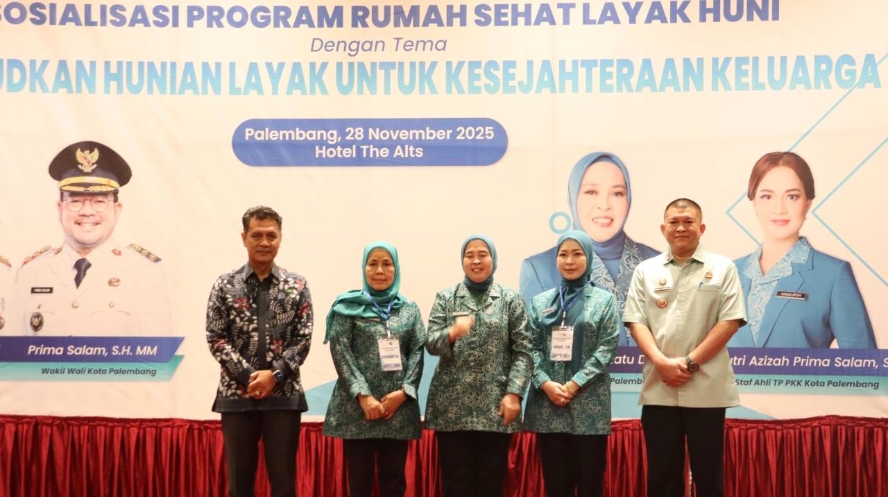MONPERA.ID, Palembang – Tim Penggerak Pemberdayaan dan Kesejahteraan Keluarga (TP PKK) Kota Palembang menegaskan komitmennya dalam mendukung terwujudnya keluarga sejahtera melalui program Rumah Layak Huni dan Gerakan HATINYA PKK (Halaman, Asri, Teratur, Indah, dan Nyaman). Hal ini disampaikan oleh Ketua TP PKK Kota Palembang, Dewi Sastrani, dalam Acara Sosialisasi Program Rumah Layak Huni dengan tema “Mewujudkan Hunian Layak untuk Kesejahteraan Keluarga” di Hotel The Alts, Jumat (28/11/2025).